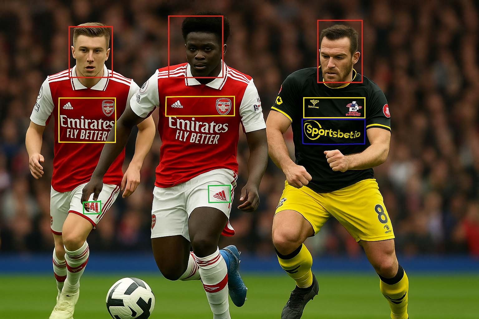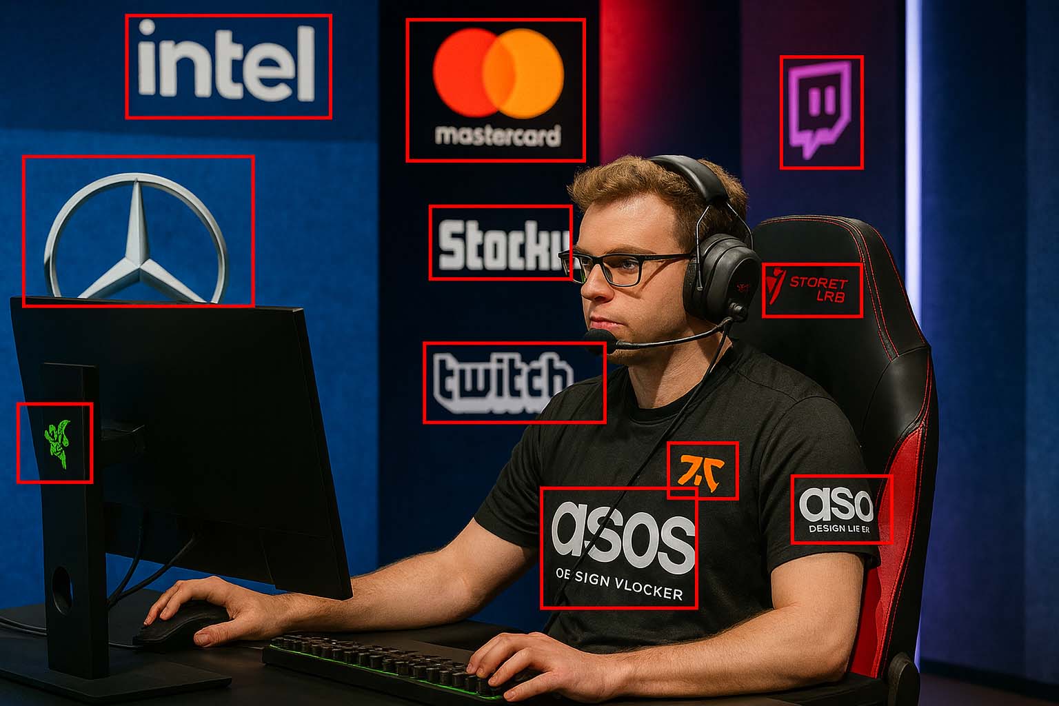 Logos and texts appear in diverse settings — on shirts, in-game screens, colored backdrops, or dynamic environments — making it difficult to track exposure reliably.